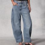 High-rise, barrel leg, ankle lengthSize 26: 13 1/4″ front rise, 25 1/2″ inseam, 17 1/2″ leg openingModel is 5’8.5″ wearing a size 25