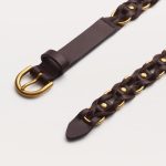 Ribbon-like strands of raw-edge leather are woven together with metal rings throughout this slender belt. The result instantly elevates any look with a bolt of texture.