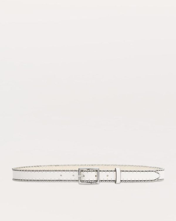 Belts | Women Rag & Bone Beaded Chain-Trimmed Baby Boyfriend Leather Belt Antique White ™