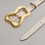 Made from Italian-milled leather with contrast edge paint, this belt makes a chic statement with its curvy, geometric buckle.