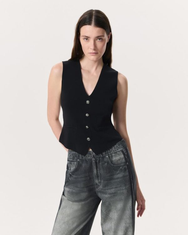 Slim fit vest Size Small: Body length 21 3/4″, chest 31 “, sweep 28 1/2″Model is 5’10.5 wearing size small