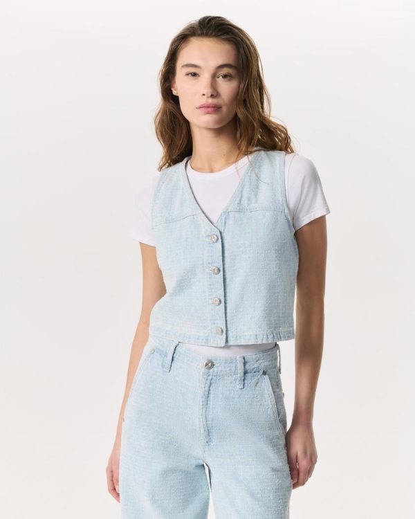 Tailoring with a twist. This denim vest is cut from Lightweight Rigid, our non-stretch denim that provides structure, but breaks in over time for a soft and comfortable feel. It doubles down on texture with allover tweed-inspired surface and braid-embossed metal buttons.