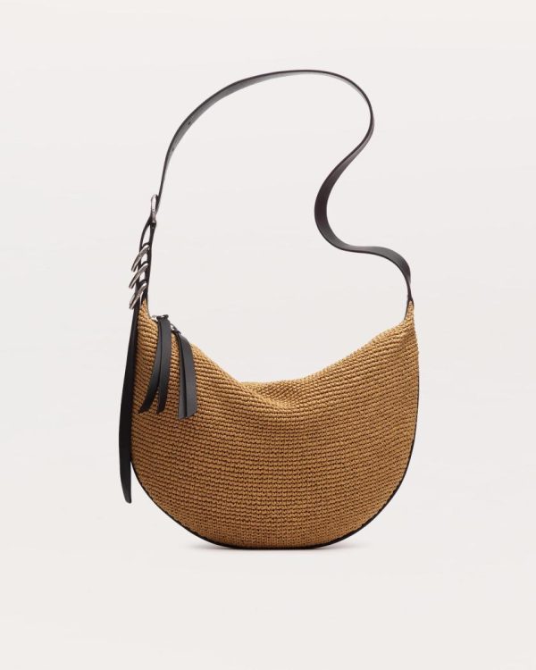 Our iconic hobo bag, reimagined. This sophisticated new interpretation streamlines the original design into a soft, sculptural curve woven from flexible, resilient straw. The long leather strap features our trio of signature buckles that allow you to adjust its length to sling over your shoulder or wear comfortably across the body. An interior slip pocket helps keep your items organized and easily accessible.
