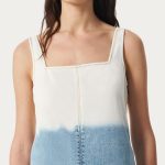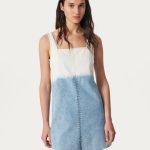 Summer in a mini dress. This sleeveless square-neck style is cut for an A-line silhouette from Featherweight, our supremely soft and super light denim that feels airy and effortless. In Bleach Stripe, a light indigo wash that’s bleached at the bodice to create a colorblock effect with a fluid, wave-like border at the waist.