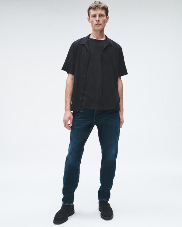 Fit 3. Mid-rise with an athletic fit engineered for mobility. Crafted from our Authentic Stretch Denim for a heritage look with a touch of stretch. In Cole, a dark blue, with a clean hem.