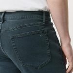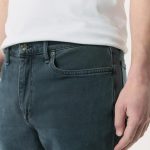 Mid rise slim fit, tailored through hip and thigh 11″ front rise, 32″ inseam, 13 1/2″ leg openingModel is 6’2″ wearing a size 32