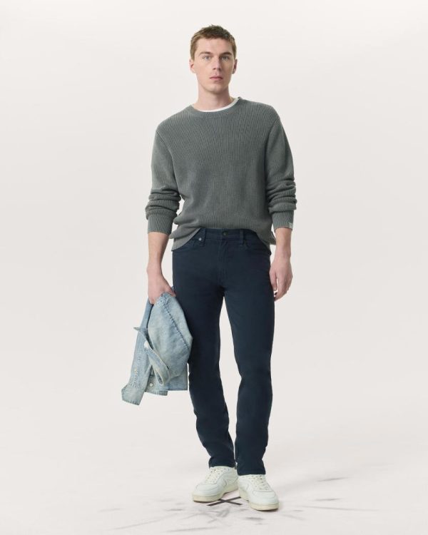 Fit 2. Our best-selling fit. Mid-rise with a slim fit and a tailored leg. Constructed in Aero Stretch – lightweight, modern comfort with superior stretch and retention. In navy garment dye with a clean hem.