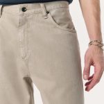 rbBAGGY. Our new perfectly oversized fit. Mid-rise, roomy through the hip and thigh, with a wide, subtly tapered leg. Cut from Authentic Rigid, a structured denim designed to break in, whisker, and fade over years of wear. In Aged Taupe, a light tan hue created through a garment-dyed process.