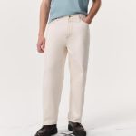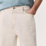 rbBAGGY. Our new perfectly oversized fit. Mid-rise with a slight taper through the thigh and a wide, roomy leg. Cut from Authentic Rigid, a structured denim designed to break in, whisker, and fade over years of wear. In Ecru, a pale cream hue.