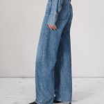 Mid-rise, wide leg, full lengthSize 26 : 11 5/8″ front rise, 30 1/2″ inseam, 20″ leg openingModel is 5’7.5″ wearing a size 25