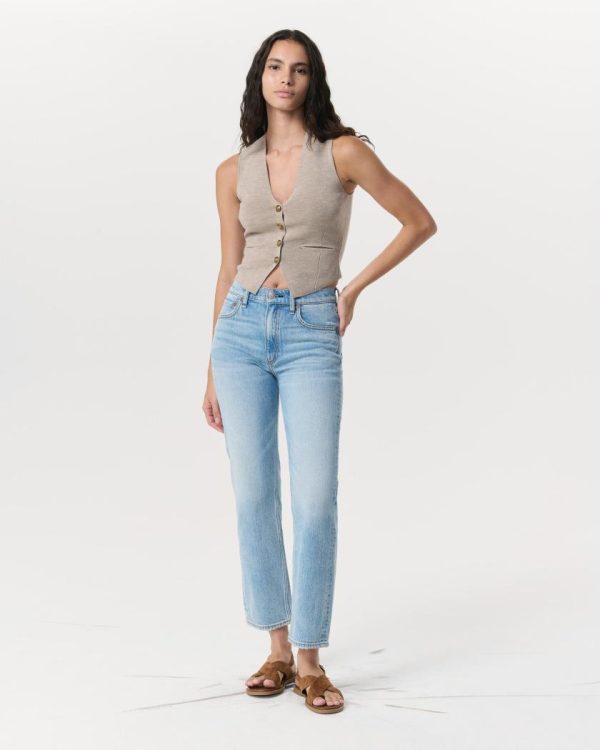Introducing The Harlow, an impossibly cool straight-leg jean. This mid-rise style is fitted through the thigh and is crafted from our Vintage Stretch denim, which looks rigid but is finished with a touch of stretch. This ankle length jean can be styled with just about anything to look amazing. Zero effort required. Available in Lou, a light indigo wash.