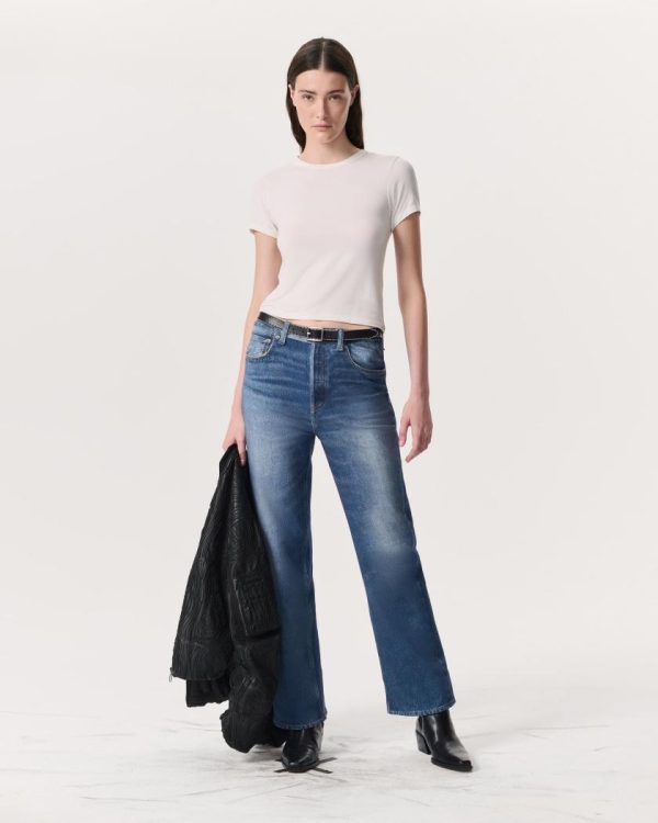 • High-rise, relaxed straight leg• Size 26: 12″ front rise, 30″ inseam, 19″ leg opening• Model is 5’10.5 wearing size 25
