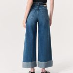 High-rise wide leg, ankle length Size 26: 11 3/4″ front rise, 33″ inseam (before cuff), 29″ inseam (after cuff), 25 1/4″ leg openingModel is 5’10.5 wearing size 25