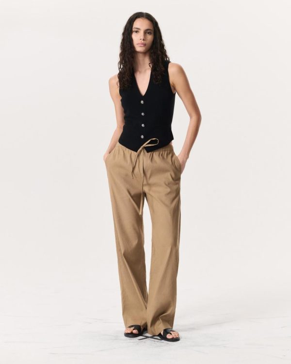 Reimagined for the season with total comfort in mind, our pull-on wide-leg pants combine an airy linen blend with a drawstring elastic waistband. Wear yours when lounging on off-duty days, whether at home or by the water.
