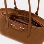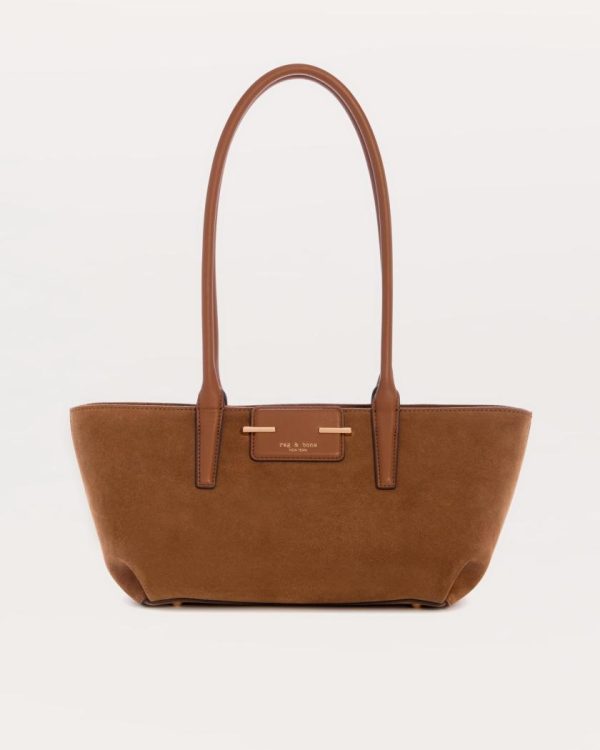 The small yet sophisticated shoulder bag you’ve been searching for. Crafted from soft suede, this structured east-west satchel features a fresh logo patch with sleek metal bars and can be comfortably slung over your arm.