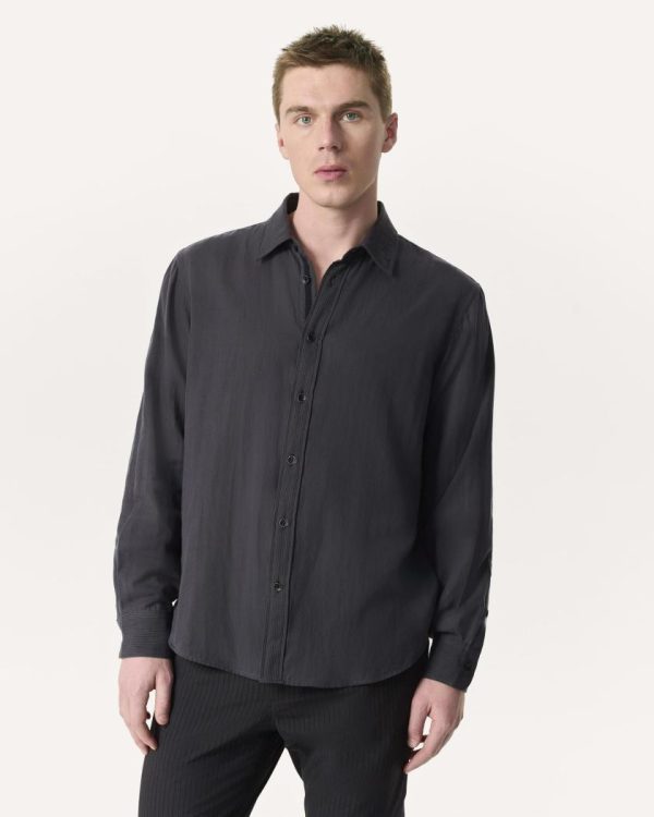 Tailored for a classic fit, this lightweight button-up shirt is crafted from two layers of textured cotton gauze, with the subtle stripes of one layer visible through the airy, open weave of the other. Bengal stripes at the collar, placket, and cuffs enhance its visual interest.