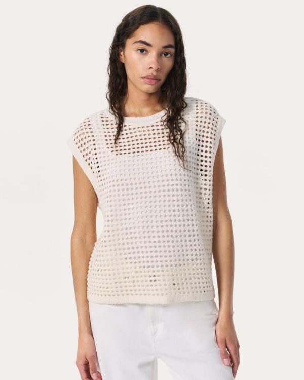 Light, breathable, and made to layer. Designed with warm-weather days in mind, this open-knit vest is crafted from a beautiful summer-weight yarn spun with cotton, silk, and linen. Throw the oversized top on over a long-sleeve shirt or tank when breezes pick up or temperatures start to dip. Take your typical size for its intended looser look, or size down for a closer fit.