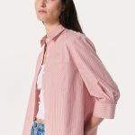 A fresh take on the striped button-up shirt. Tailored for a relaxed, slightly cropped fit from crisp cotton poplin. Finished with a chevron front pocket and gathered sleeves cuffed at the perfect length for a chic, flowy look. It’s a new wardrobe staple that pairs well with anything�especially denim.