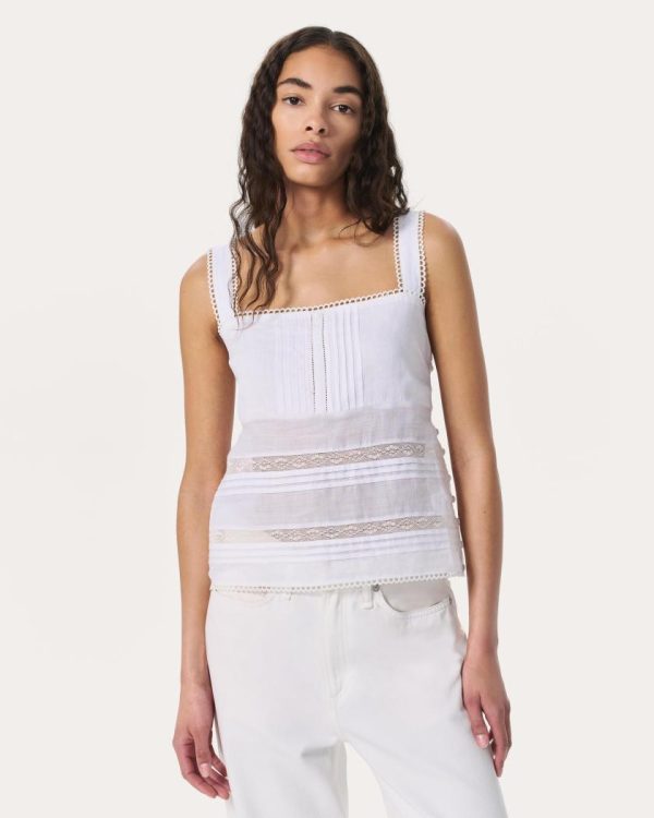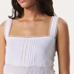 Feminine, but not fussy. Crafted from ramie, a natural, linen-like fabric that’s lightweight & breathable, this unlined tank is made for beach walks, alfresco dinners, and everywhere in between. Tonal pintucks, scalloped trims, and semi-sheer, floral-patterned lace create the right mix of romantic texture that feels easy yet elevated.