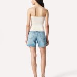 The Kaia Short. High-rise jean shorts with an ever-so-easy fit and 6.5″ inseam that’s just right. Crafted from Lightweight Rigid non-stretch denim that provides structure, but breaks in over time for a soft and comfortable feel. In Maslin, an airy light indigo wash with a cut hem.