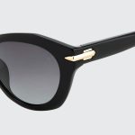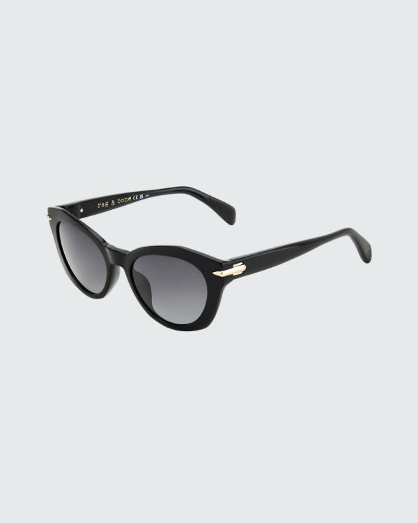 A cat eye silhouette with an acetate frame and 100% UV protection.