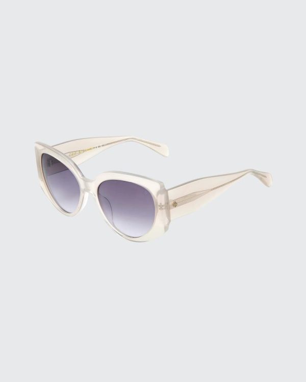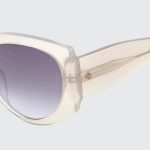 A cat eye silhouette with an eco acetate frame and 100% UV protection.