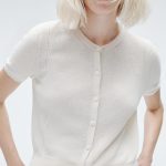 This fitted short sleeve cardigan is crafted from a stretch cotton linen blend for the perfect fit. Complete with recycled buttons down the center front.