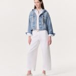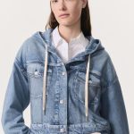 Miramar, our revolutionary printing technique, makes any material look like denim. This cross between a trucker jacket and a hooded sweatshirt is cut and sewn from cotton terry cloth that’s ultra-soft on the inside and printed on the outside to look like your favorite denim jacket. Featuring functional draw cords, faux chest pockets, and signature dagger buttons down the front and cuffs, the relaxed style further achieves its comfortable fit and feel with the other pockets and denim details digitally printed on the fabric.