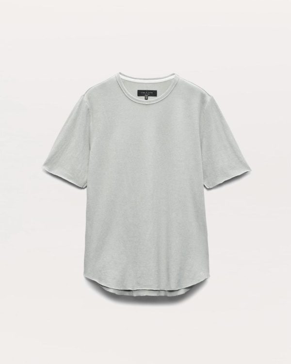 Your new warm-weather essential. This crewneck T-shirt is cut for a classic fit from a blend of hemp and organic cotton, making it incredibly lightweight and breathable. Raw, rolled edges at the sleeves and curved hem complete its airy, effortless look.