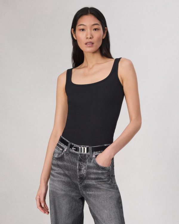 T-Shirts | Women Rag & Bone Essential Rib Scoop Tank Black ™