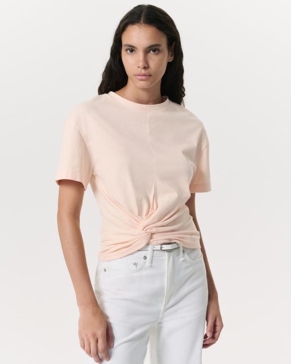 Cut with the perfect drape from super-soft Peruvian cotton, this short-sleeve T-shirt is finished with a feminine twist detail at the front for a fresh take on a classic tee.