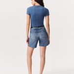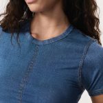 Whether you’re getting to know (or already adore) Miramar, our revolutionary printing technique that makes any material look like denim, you’ll love it in our new jersey fabric. This modern take on the baby tee is cut and sewn from stretchy, ultra-soft jersey that’s printed on the outside to look like a denim T-shirt. Breathable and figure-flattering, the unlined style further achieves its comfortable fit and feel with the seams and other denim details digitally printed on the fabric.